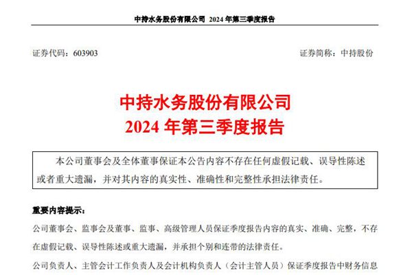 中持水务股份有限公司(简称:中持股份)近日发布《2024 年第三季度报告》,公司前三季度实现营收约6.48亿元,同比减少25.89%;归属于上市公司股东的净利润亏损约231万元;基本每股收益亏损0.01元。图源:中持股份公告 中持股份是一家创新型的综合环境服务商,以“创造安全、舒适、可持续的环境”为使命。公司...
