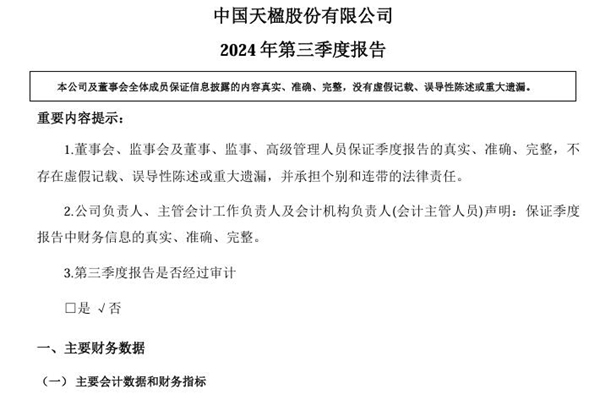 2024年10月31日,中国天楹股份有限公司发布《2024年三季度报告》。图源:中国天楹股份有限公司公告 报告显示,第三季度实现营业总收入16.21亿元,同比增长18.59%;归母净利润338.76万元,同比下降97.90%;前三季度实现营业收入42.7亿元,同比增长13.71%;归母净利润3.63亿元,同比增长11.64%。 业...