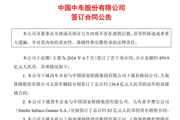 中国中车股份有限公司发布《签订合同公告》,公司下属企业与湖南省第四工程有限公司新能源分公司、中国大唐集团国际贸易有限公司、中国电建集团西北勘测设计研究院有限公司、金风科技股份有限公司分别签订了总计约10.6亿元人民币的风电设备销售合同。...