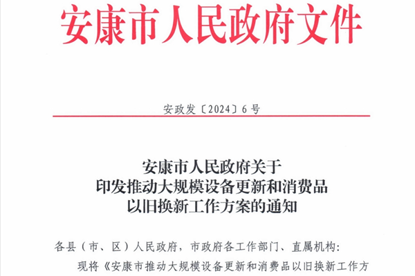 安康市人民政府印发《推动大规模设备更新和消费品以旧换新工作方案》,要求到2027年,报废汽车回收量较2023年增加约一倍,二手车交易量较2023年增长45%,废旧家电回收量较2023年增长30%,再生材料在资源供给中的占比持续提升。能效水平和本质安全水平得到显著提升,再生资源回收利用体系进一步优化。安康市人民政府关于印发推动大规模设备...