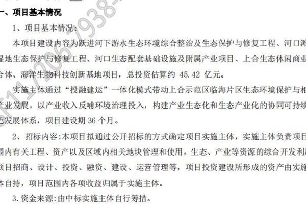 《青岛市上合示范区临海片区综合整治与产业融合发展EOD项目招标公告》发布,该项目总投资额4542171400元。 公告显示,项目建设内容为跃进河下游水生态环境综合整治及生态保护与修复工程、河口滩涂湿地生态保护与修复工程、河口生态配套基础设施及附属产业项目、上合生态休闲商业综合体、海洋生物科技创新基地项目,总投资估算约 45.42 亿...