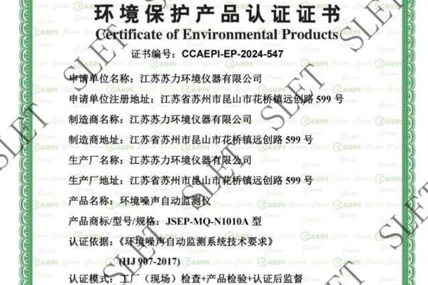 近日,江苏省环保集团监测监控公司所属子公司江苏苏力环境仪器有限公司的JSEP-MQ-N1010A型环境噪声自动监测仪通过环境保护部环境监测仪器质量监督检验中心的适用性检测,并获得中环协(北京)认证中心颁发的中国环境保护产品认证证书。 2023年1月生态环境部印发的《“十四五”噪声污染防治行动计划》、2023年...