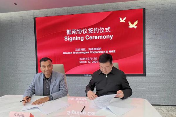 3月12日,美国HANSEN总裁 Santhosh Kumar先生与江苏南通高新区政府签署了HANSEN制造工厂落地框架协议,HANSEN本土化业务就此拉开序幕。目前制造工厂厂房已进入装修阶段,预计第三季度将实现正式生产与发货。同时,团队各部门在美国工厂优化生产线并测试,确保生产线安装与厂房装修交接有效衔接。 中国工厂第一阶段将生产...