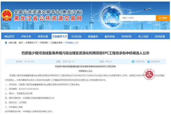 近日,巴彦县少陵河流域畜禽养殖污染治理及资源化利用项目EPC工程总承包中标候选人公示名单,深水海纳水务集团股份有限公司为预中标人。 据悉,项目采用EPC+O工程总承包模式,预中标金额为22289.98万元,实施后将进一步完善巴彦县非规模畜禽粪污污染防治和资源化利用水平,保护和改善农村人居生态环境和水生态环境。 项目工艺路线分为生物...