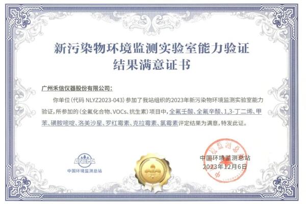 近日,禾信仪器以优异的成绩,通过由生态环境部国家环境分析测试中心,以及中国环境监测总站分别组织的“2023年度环境新污染物专项能力验证”活动,验证项目分别为水中抗生素的测定,以及全氟化合物、VOCs、抗生素等十多种化合物的测定。再次展现禾信仪器在环境监测领域的领先地位!由中国环境监测总站颁发的“新污...