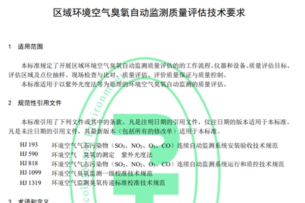 为防治生态环境污染, 改善生态环境质量,规范环境空气臭氧自动监测质量评估工作,《区域环境空气臭氧自动监测质量评估技术要求》制定(全文见附件)。 本标准为首次发布,规定了区域环境空气臭氧自动监测质量评估的工作流程、仪器和设备、质量评估目标、评估区域及点位抽样、现场检查与比对、质量评估、质量保证与质量控制等内容,适用于以紫外光度法等为原...