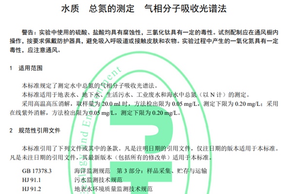 《水质 总氮的测定 气相分子吸收光谱法》(HJ 199—2023)将于2024年6月1日起施行(全文见附件),本标准规定了测定地表水、地下水、生活污水、工业废水和海水中总氮的气相分子吸收光谱法。本标准的附录A 为资料性附录。本标准是对《水质总氮的测定 气相分子吸收光谱法》(HJ/T 199—2005)的修订。 ...