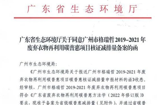近期,由广咨国际(广东环保集团持股41.67%)提供碳资产开发咨询服务的“广州市格瑞哲2019-2021年废弃衣物再利用碳普惠项目”实现碳减排量成功签发,签发量8699吨CO₂当量,按市场价60元/吨减排量计,该项目带来了52万收益。广东省生态环境厅关于本项目减排量的备案函 该项目既是广东省首个资源循环利用类...