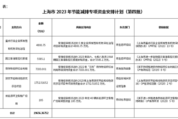 2023年11月8日,上海市发展和改革委员会发布《关于下达本市2023年节能减排专项资金安排计划 (第四批)的通知》,安排重点支持5项内容。通知全文如下: 关于下达本市2023年节能减排专项资金安排计划 (第四批)的通知市生态环境局、市住房城乡建设管理委、市绿化市容局: 你们报来的资金使用计划申请函(沪环函〔2023〕167号、16...