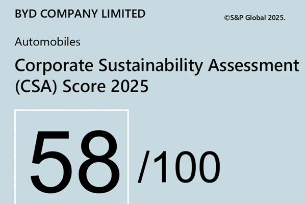 2025年11月,全球资本市场权威机构标普全球(S&P Global)、明晟(MSCI)发布最新企业ESG评分结果,比亚迪ESG评分实现重大突破:标普CSA评分跃升至58分、明晟MSCI ESG评级提升至AA,多项议题评分大幅领先行业平均水平,彰显可持续发展领导力。其中,比亚迪标普CSA评分较去年增长20分,同步增长52.63%,位列...