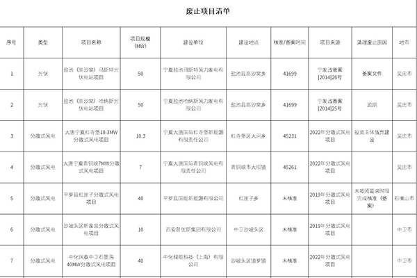 自治区发展改革委关于废止一批新能源项目的公告 为推动我区新能源项目高效、有序、健康发展,进一步优化新能源资源配置,及时释放电网接入空间、土地资源等,经各市梳理上报,现对9个共449.3MW新能源项目予以废止。有关项目情况公告如下: 附件:废止项目清单 宁夏回族自治区发展改革委 2025年7月17日 (此件公开发布)...