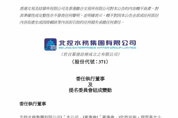 6月5日,北控水务集团有限公司(简称:北控水务集团)发布公告称,周雪燕获委任为公司执行董事,自2025年6月5日起生效。 据悉,周女士现兼任北京北控水务有限公司董事长、北京京城环保股份有限公司董事及北京北控制水有限公司董事及总经理。周女士毕业于中国人民大学,获授经济学学士学位,其后取得经济学硕士学位及管理学博士学位。图源:北控水务集...