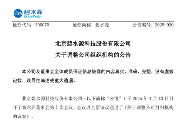 北京碧水源科技股份有限公司(简称:碧水源)近日公告称,为了适应公司业务的发展和战略规划布局的需要,公司拟新设海水产业事业部,主要承担公司内部现有海淡业务相关的资源整合、强化海淡及相关海水产业的业务开拓能力、对海水业务链进行延伸和拓展。调整后的组织机构图如下↓图源:碧水源公告 申明:本站发布此信息的目的在于传播更多信息,与本...