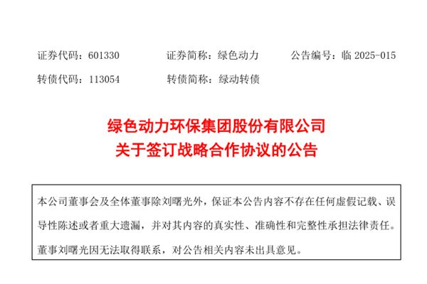 绿色动力环保集团股份有限公司(简称:绿色动力)公告称,公司于2025年4月3日在广东省东莞市与固高科技股份有限公司(下称“乙方”)签订《战略合作协议》。双方发挥各自企业的优势开展合作,积极服务国家战略,主动融入国家高质量发展大局,通过加强信息交流共享,积极构建战略合作伙伴关系,进一步整合双方优势资源,促进乙方技...