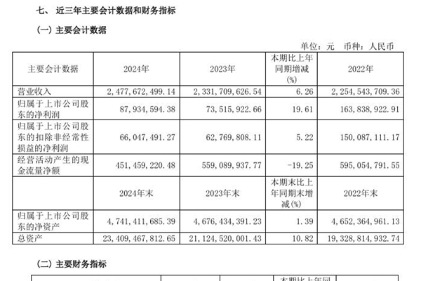 2025年03月27日,广西绿城水务股份有限公司发布《2024 年年度报告》。图源:绿城水务公告 2024年,实现营业收入24.78亿元,同比增长6.26%;归属于上市公司股东的净利润8793.46万元,同比增长19.61%;基本每股收益0.0996元。 2024年,公司完成售水量52,224.47万立方米,完成年度计划的101....