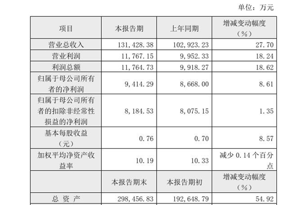 2025年02月28日,青岛达能环保设备股份有限公司发布《2024年度业绩快报公告》。图源:青达环保公告 报告期内,公司实现营业收入131,428.38万元,同比增长27.70%;实现营业利润11,767.15万元,同比增长18.24%;实现利润总额11,764.73万元,同比增长18.62%;归属于母公司所有者的净利润9,414...