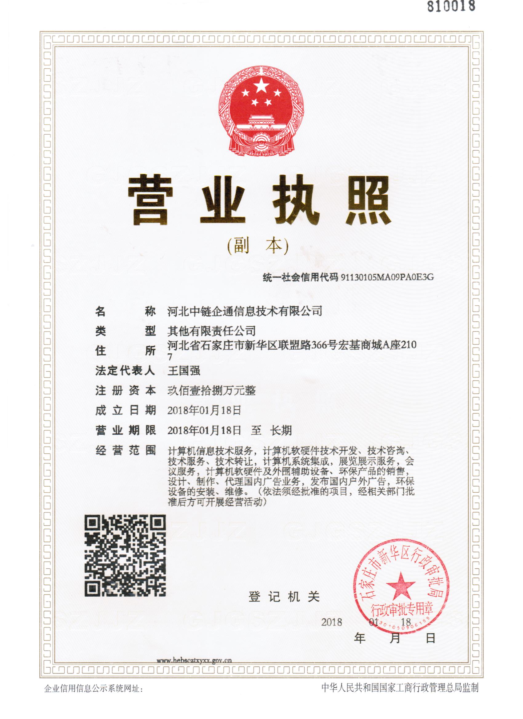 河北中链企通环保信息技术有限公司创建于2018年1月18日,是集信息技术服务、软硬件技术开发、信息技术咨询、电商平台服务、环保产业链平台服务(环保产品的销售、设计、制作、安装、维修)、展会展览、会议服务、广告服务为一体的环保互联网产业链综合服务公司